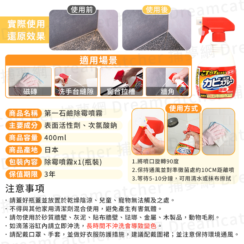 【现货 免运费?日本境内版】第一石碱 除霉喷雾 400ml 浴室除霉 浴室清洁剂 清洁剂 厕所地板磁砖清洁剂 除霉 防霉