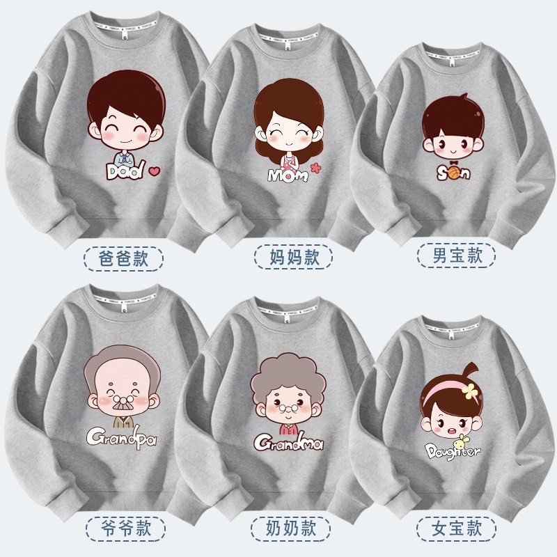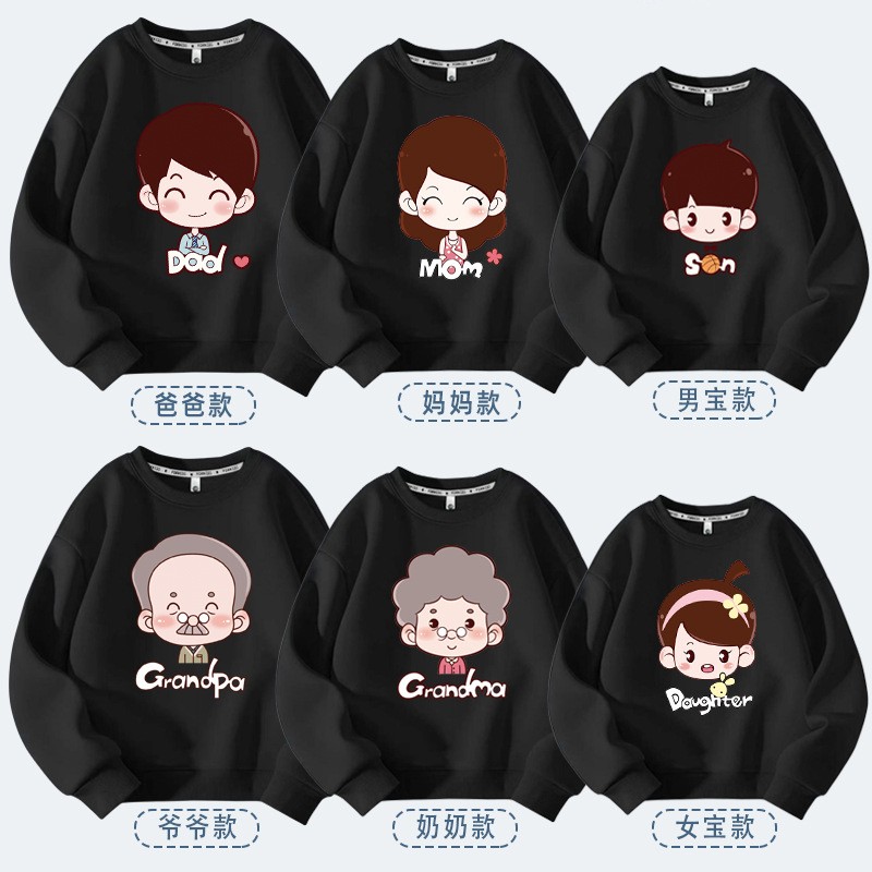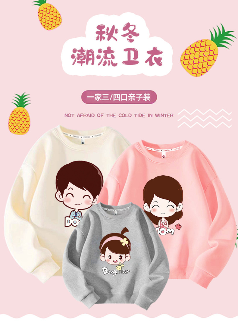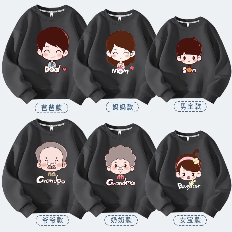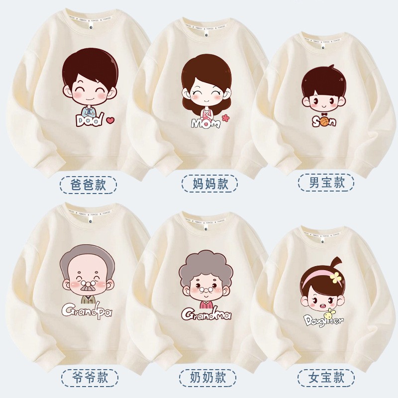 全家福一家六口亲子装卫衣秋冬季长袖落肩宽松版红色上衣新年款潮