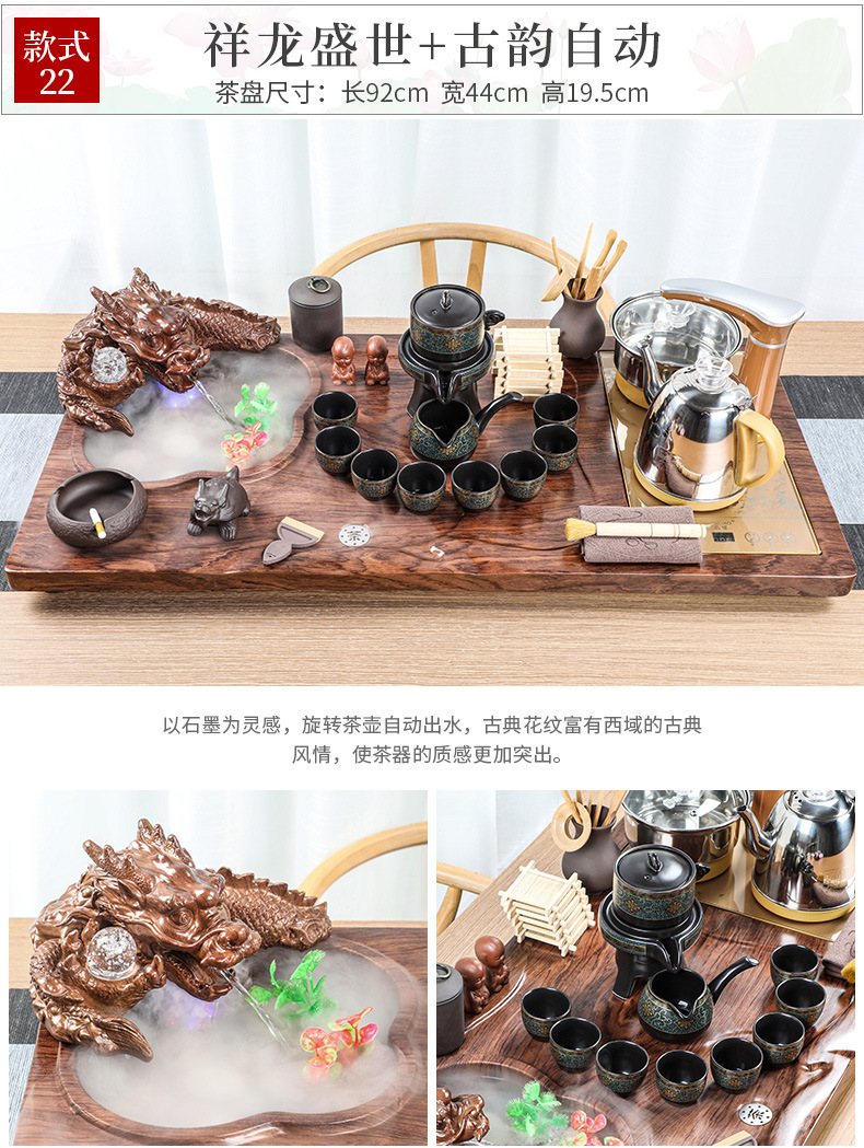 茶具茶盘套装带流水雾化创意茶台整套家用四合一自动电热磁炉
