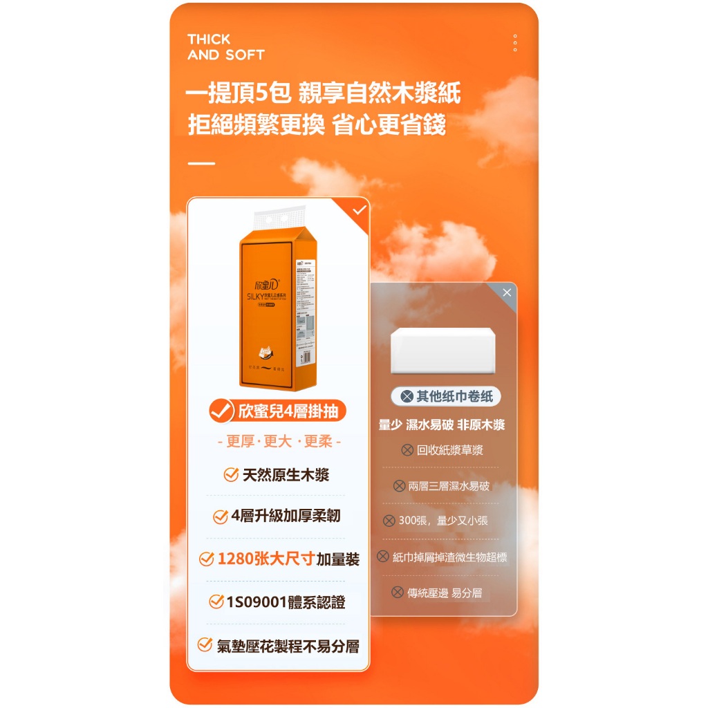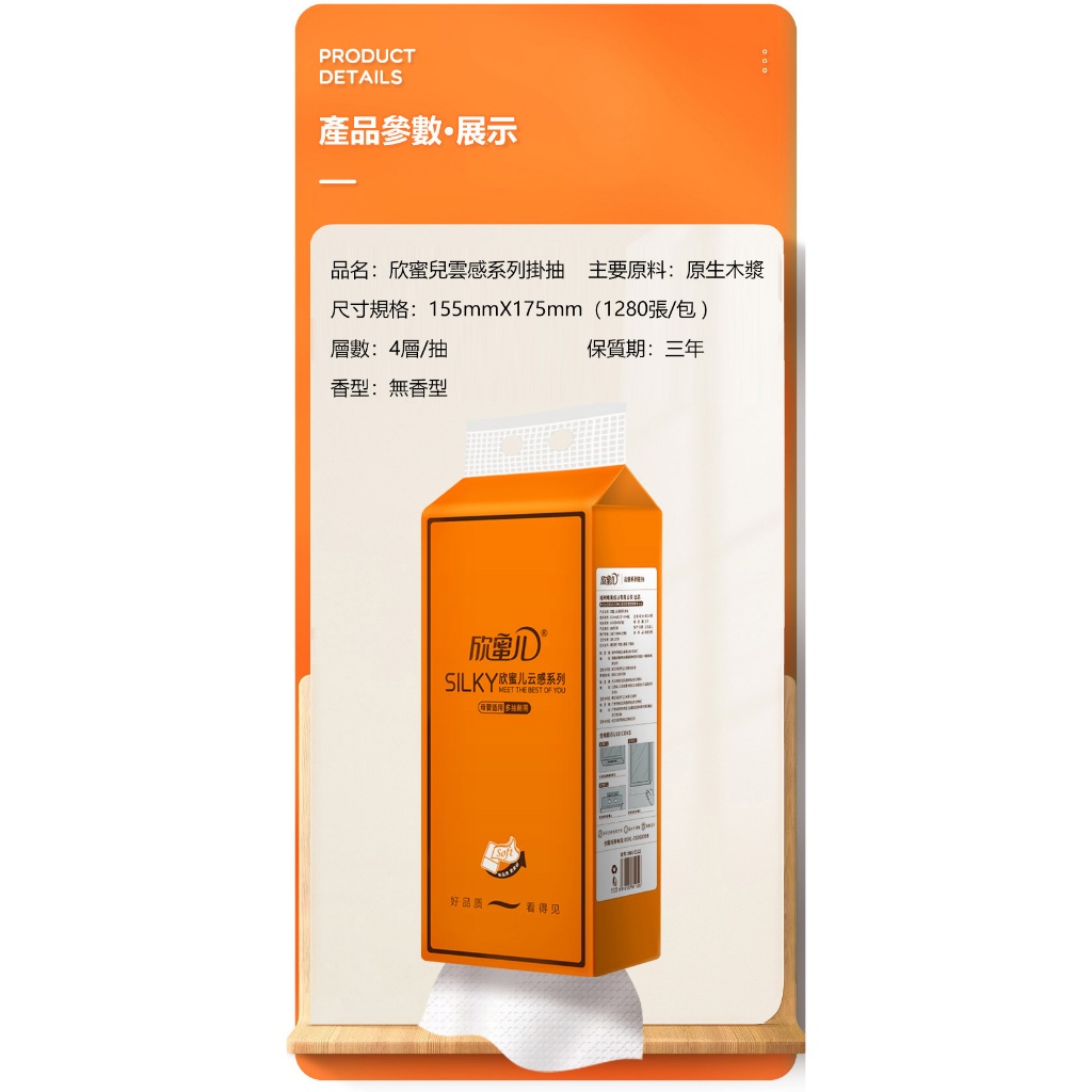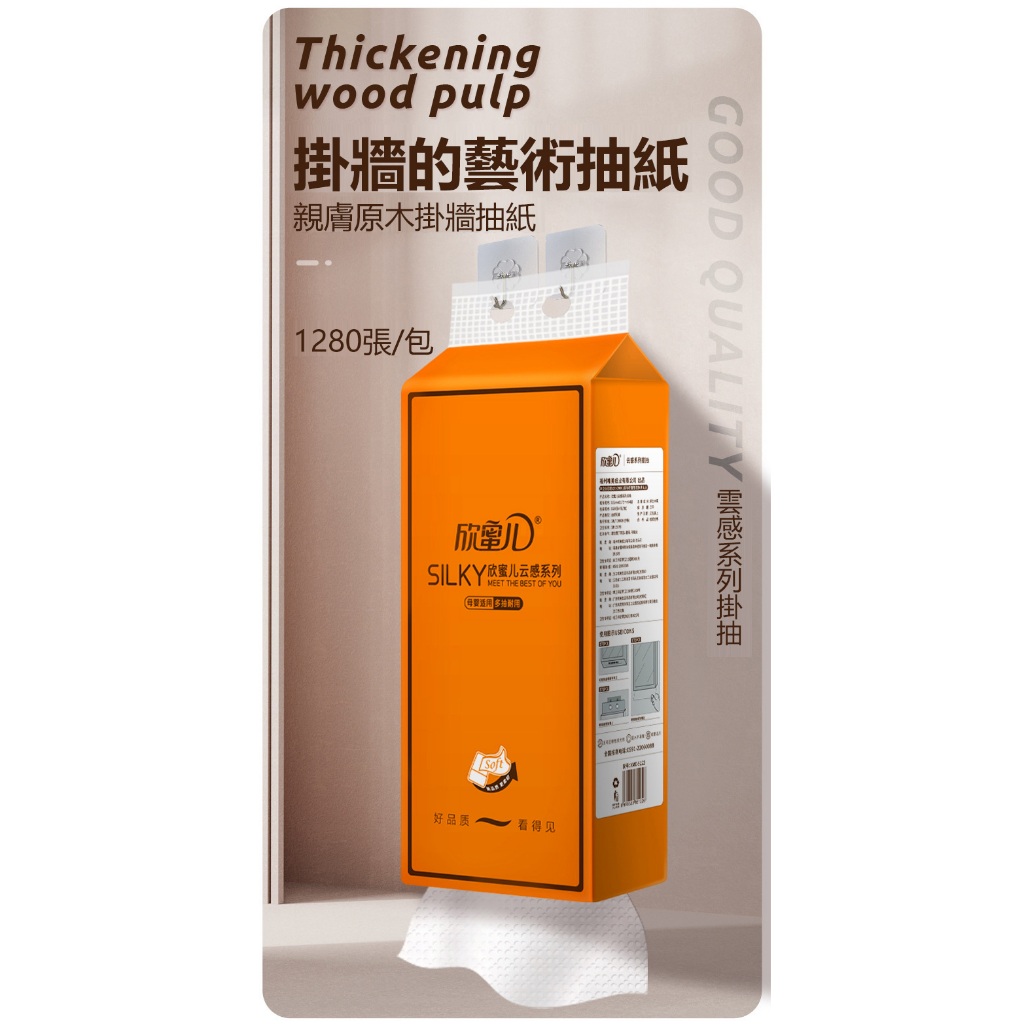 1280张大容量 4包一箱 悬挂式抽纸 卫生纸 可挂式加量加厚棉柔纸巾 擦手纸 柔肤巾 纸巾 棉柔纸 面纸