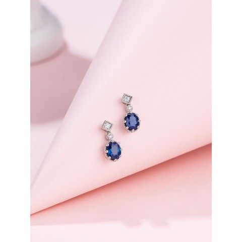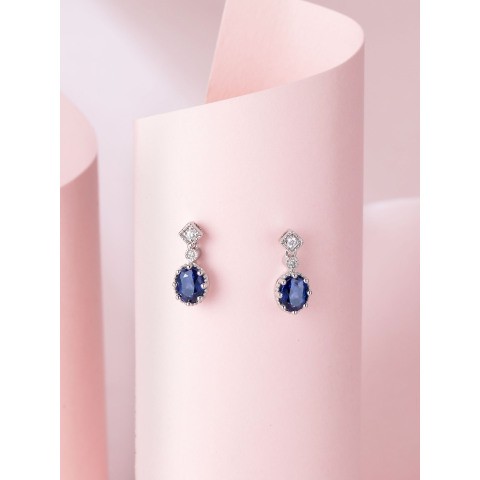 蓝宝石钻石耳环18K金 CH034(主石0.92ct 钻石0.05ct 18K蓝宝石 总重2.37克)