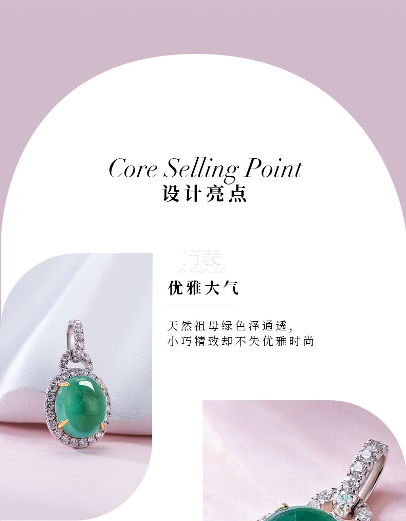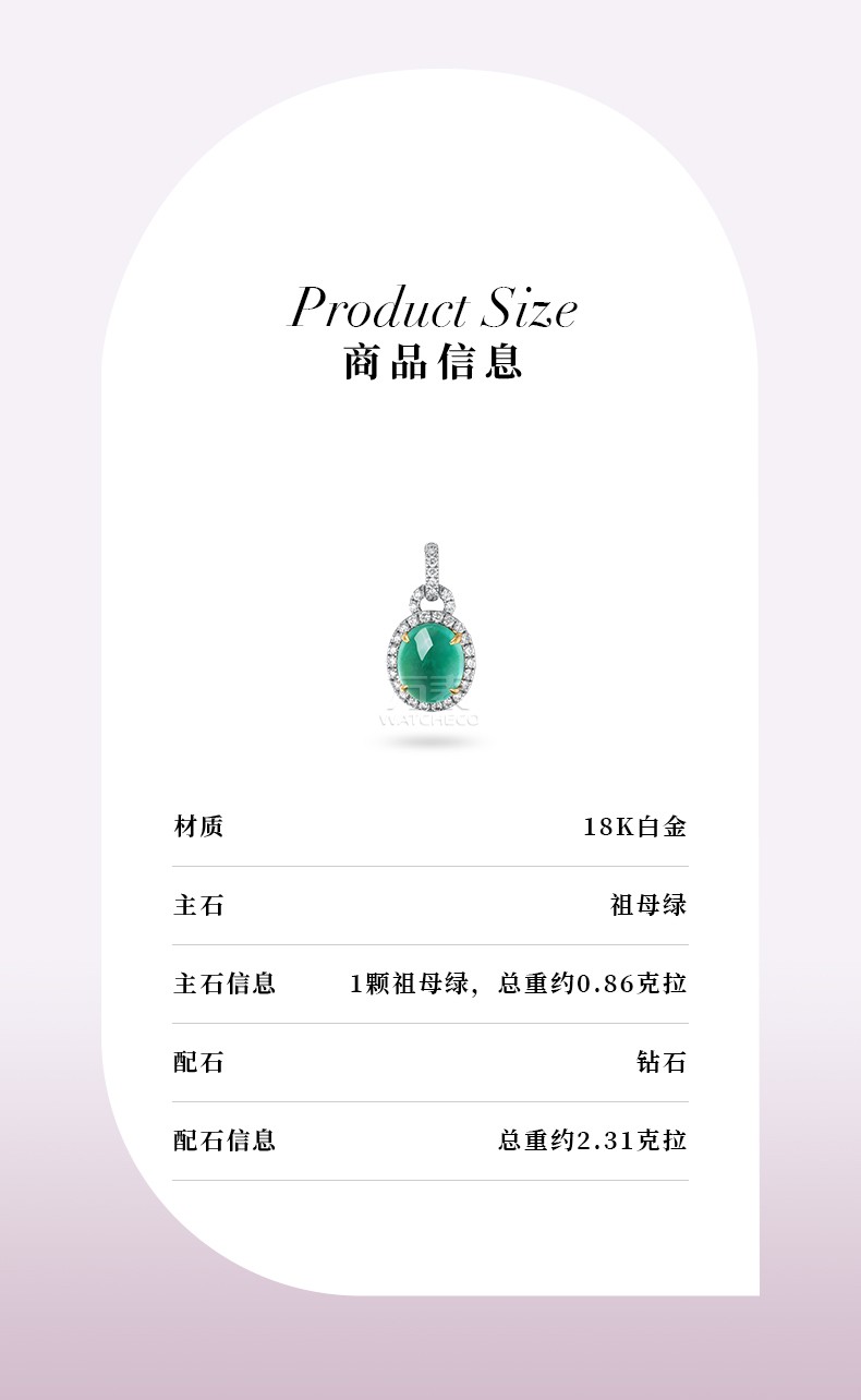 祖母绿钻石吊坠18K金 CH051(主石2.6ct 钻石0.36ct 18K蓝宝石 总重量2.34g)