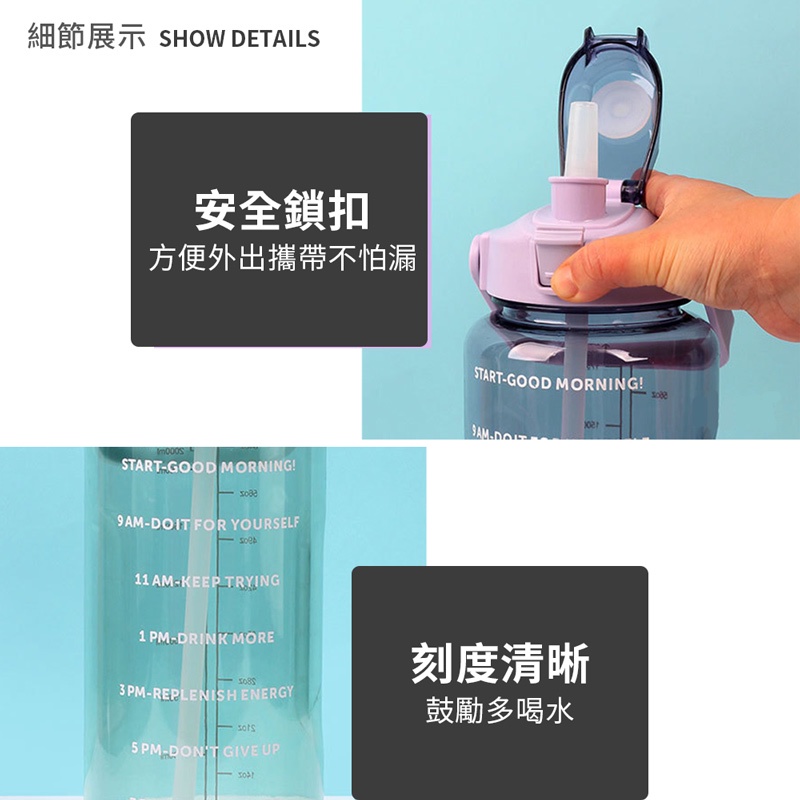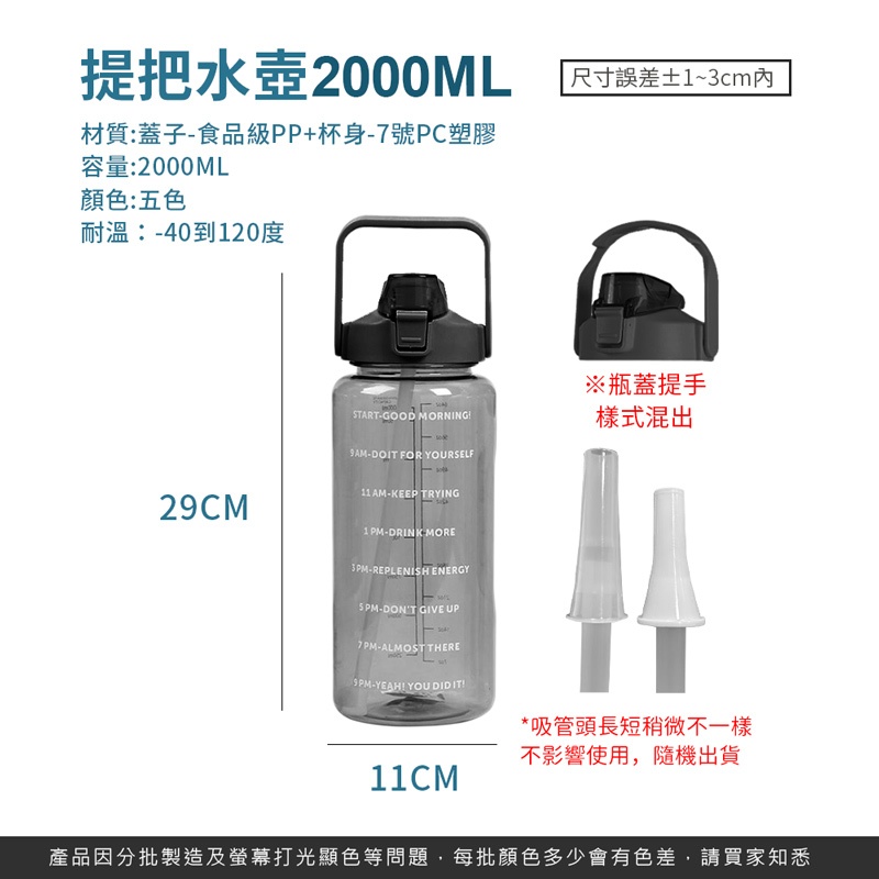 2公升提把水壶 2公升 2000ml 大容量 运动水壶 附吸管 健身用 附提把 外出携带【CC0312】