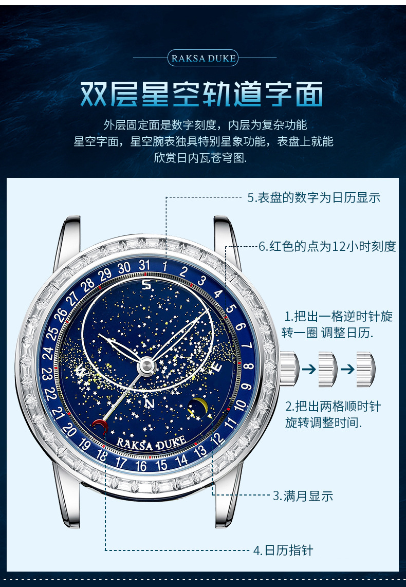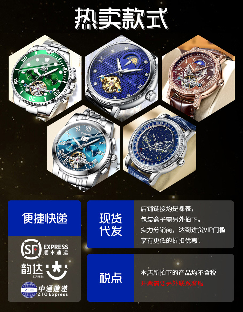 2023直播热卖手表星际旋转夜光男表 男士全自动机芯机械表高档