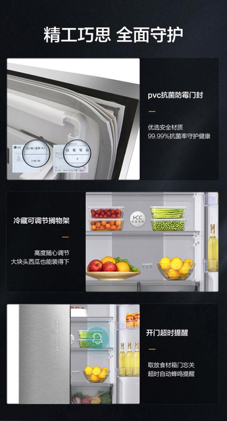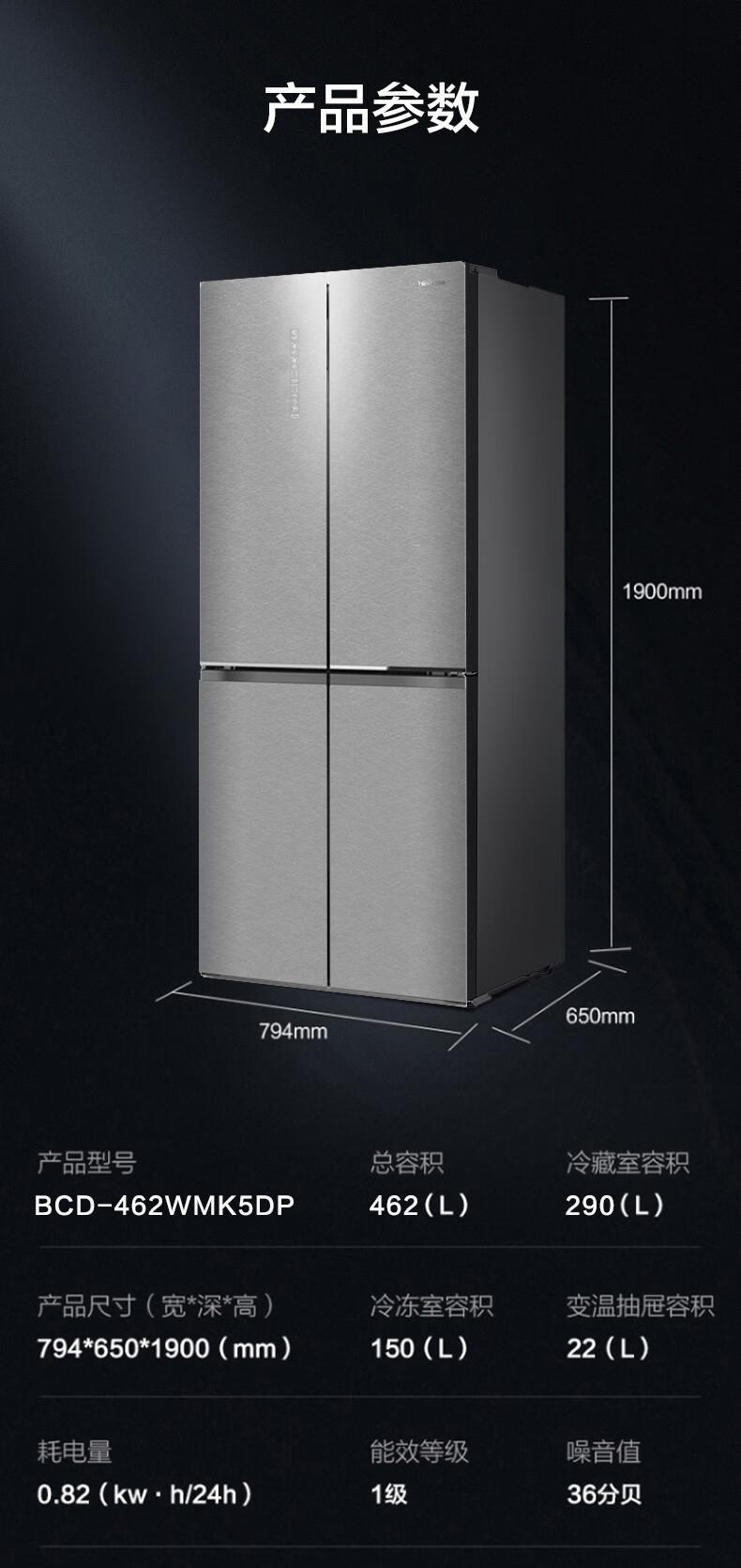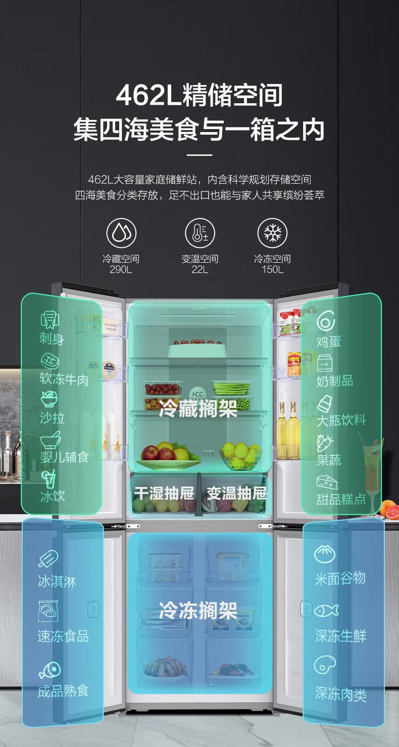 食神系列462升十字双开门冰箱 能效风冷无霜家用嵌入