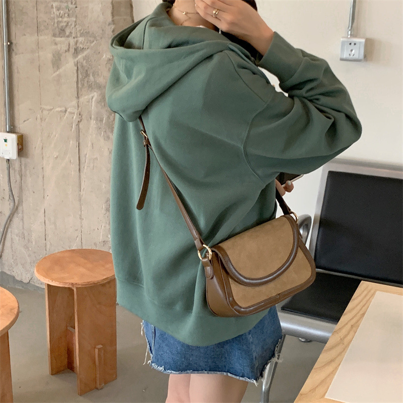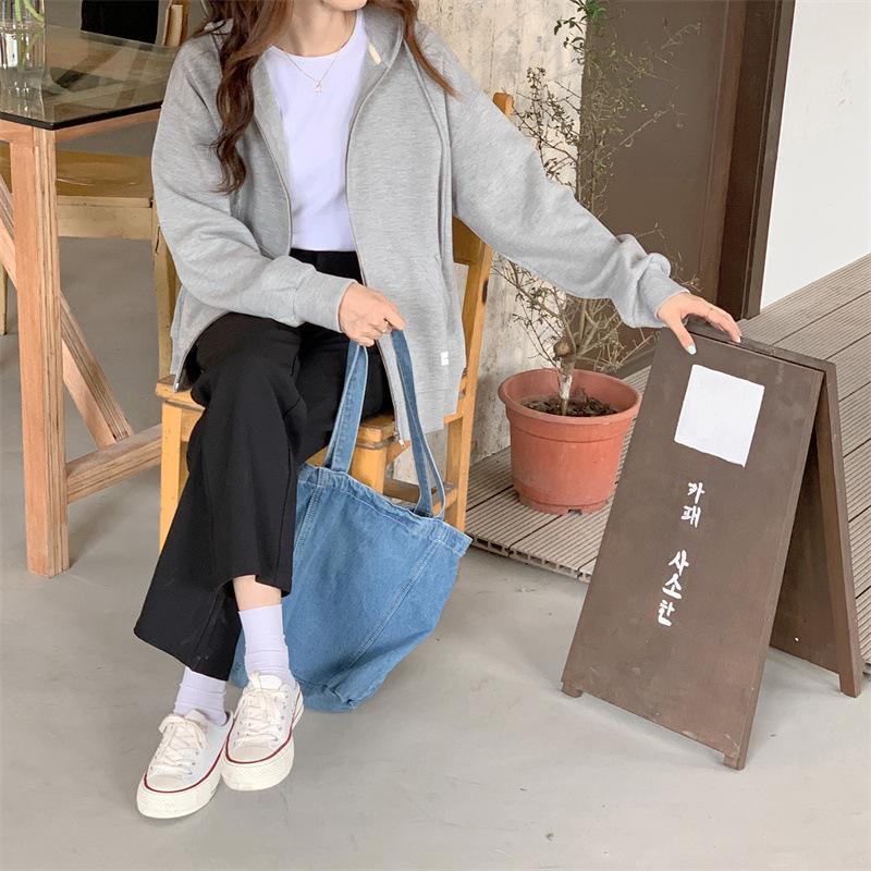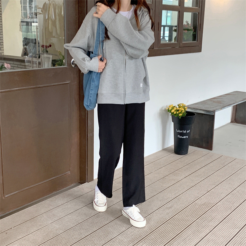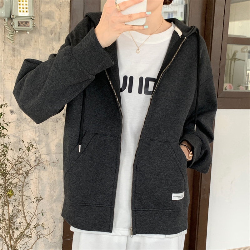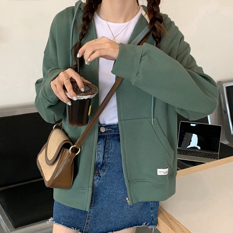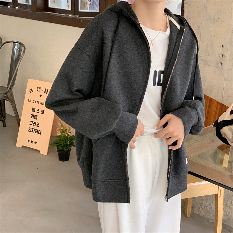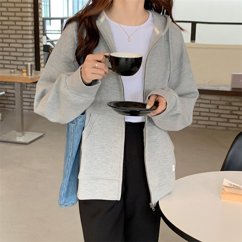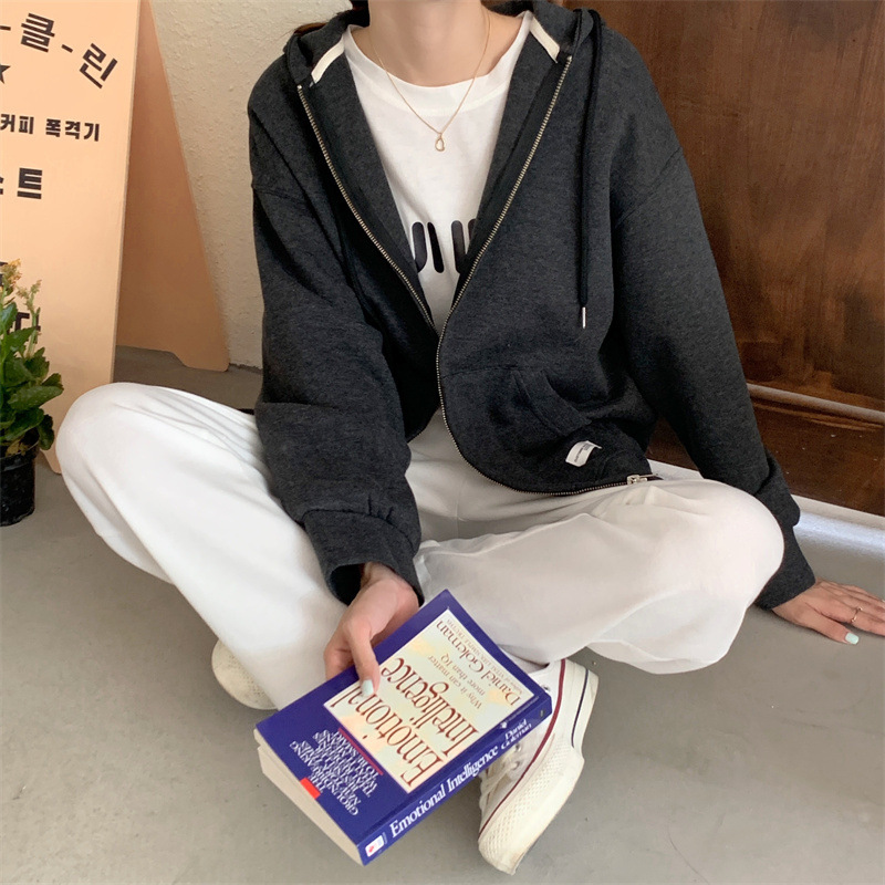 韩版宽松BF风长袖开衫连帽卫衣休闲外套女2023春秋学院风纯色上衣