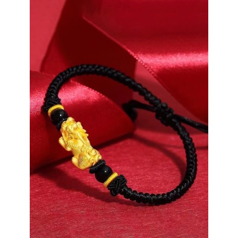 足金黄金貔貅手绳纳财招财进宝旺财运辟邪保平安之愿【纳财四方貔貅红绳+黑绳】 ZL035